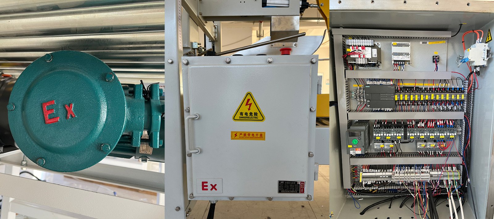 防爆包裝線是為了迎合國家安全生產(chǎn)的大方針應(yīng)運而生的,主要應(yīng)用于軍工、民爆、化工以及粉塵行業(yè)。該線體的最大特點是所有設(shè)備均為防爆型,而防爆型的標(biāo)準(zhǔn)為:電機、電箱和按鈕防爆,防爆等級為BT4級。