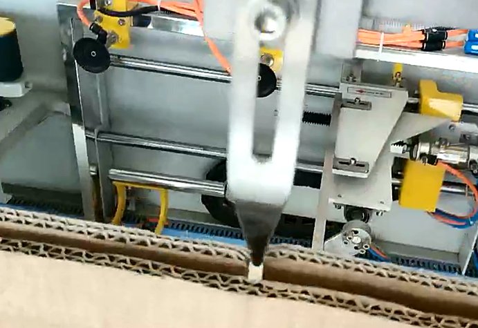 1、取箱時(shí)紙箱沒(méi)有打開。如圖所示,這個(gè)客戶的情況是在取箱的過(guò)程中,紙箱就沒(méi)有打開,還是一個(gè)整體的狀態(tài)被吸取,所以在折箱時(shí)就會(huì)報(bào)警并且掉箱。這個(gè)問(wèn)題的出現(xiàn)主要是因?yàn)橛脩粼谡{(diào)整開箱機(jī)時(shí),沒(méi)有將撥針?lè)诺郊埾涞目p隙處,導(dǎo)致紙箱在取箱過(guò)程中沒(méi)有被撥開。