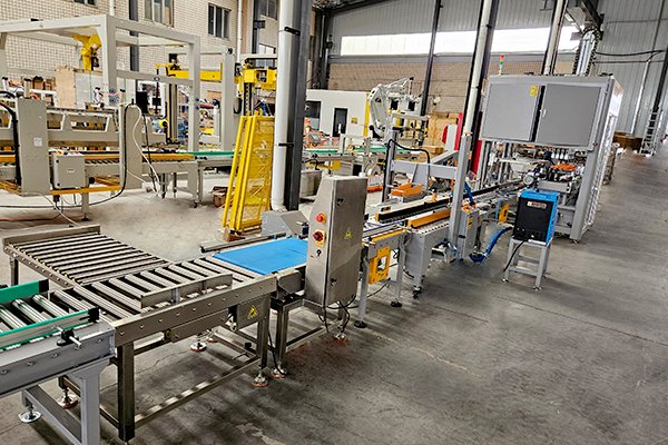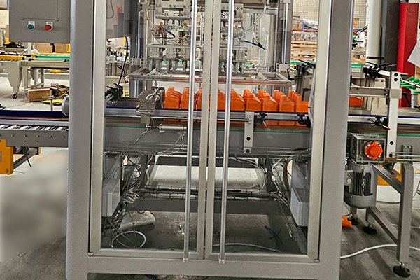 桶裝箱是裝箱案例中非常典型的的產(chǎn)品,針對不同桶的類型以及瓶口直徑的大小、效率的不同,裝箱機(jī)都會有所變化。該套機(jī)油桶裝箱包裝線是由高速熱熔膠開箱機(jī)、平移式裝箱機(jī)、熱熔膠封箱機(jī)、自動稱重剔除機(jī)組合而成。