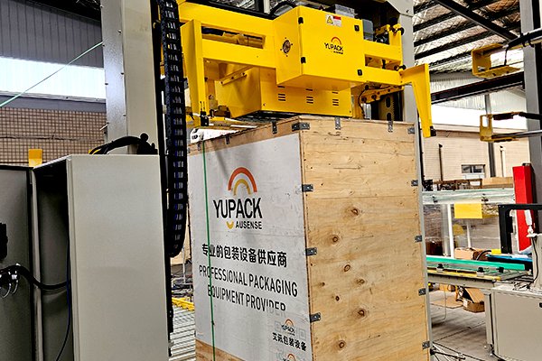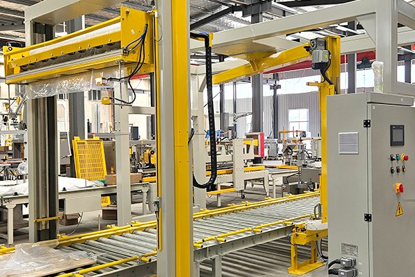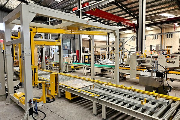 電動工具托盤碼垛通過式覆頂膜纏繞捆扎包裝線,是由自適應(yīng)型供棧機(jī)、機(jī)器人碼垛機(jī)、棧板穿劍捆扎機(jī)、通過式覆頂膜機(jī)以及搖臂式纏繞包裝機(jī)組合而成。自適應(yīng)型供棧機(jī)可根據(jù)不同托盤尺寸,自動調(diào)整機(jī)器并分配托盤,節(jié)省了人工換產(chǎn)的時間。